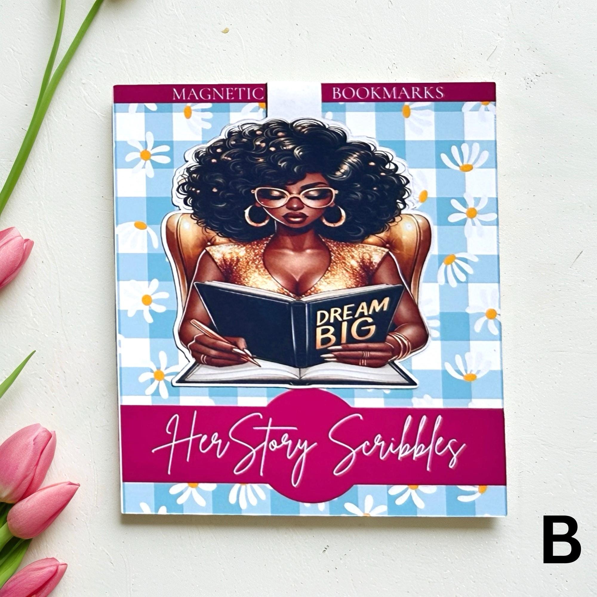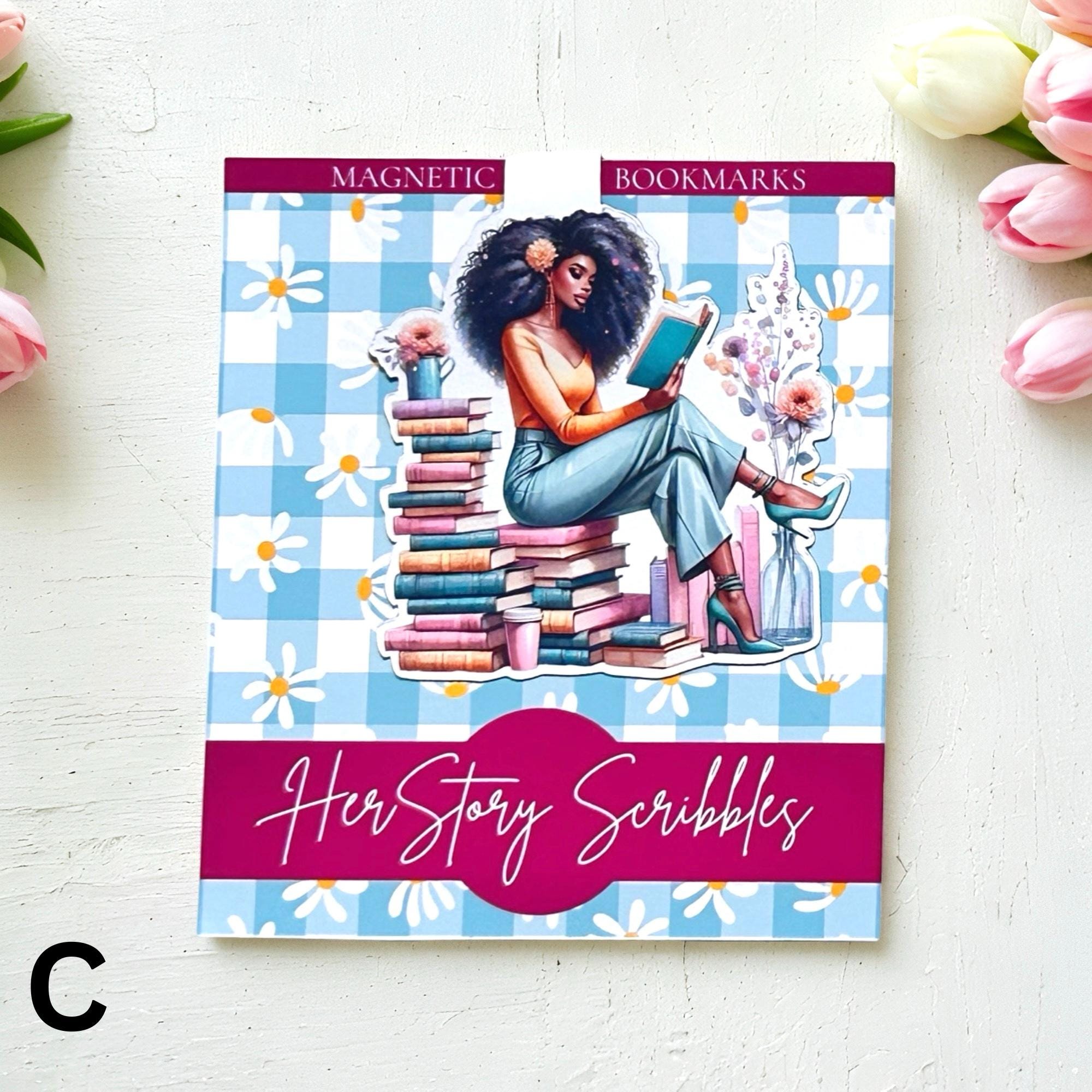 Add a pop of color and personality to your reading with our magnetic bookmarks featuring Afro American women. Make a statement with your love of literature and culture while supporting handmade creations. Shop now and never lose your place in a book again!