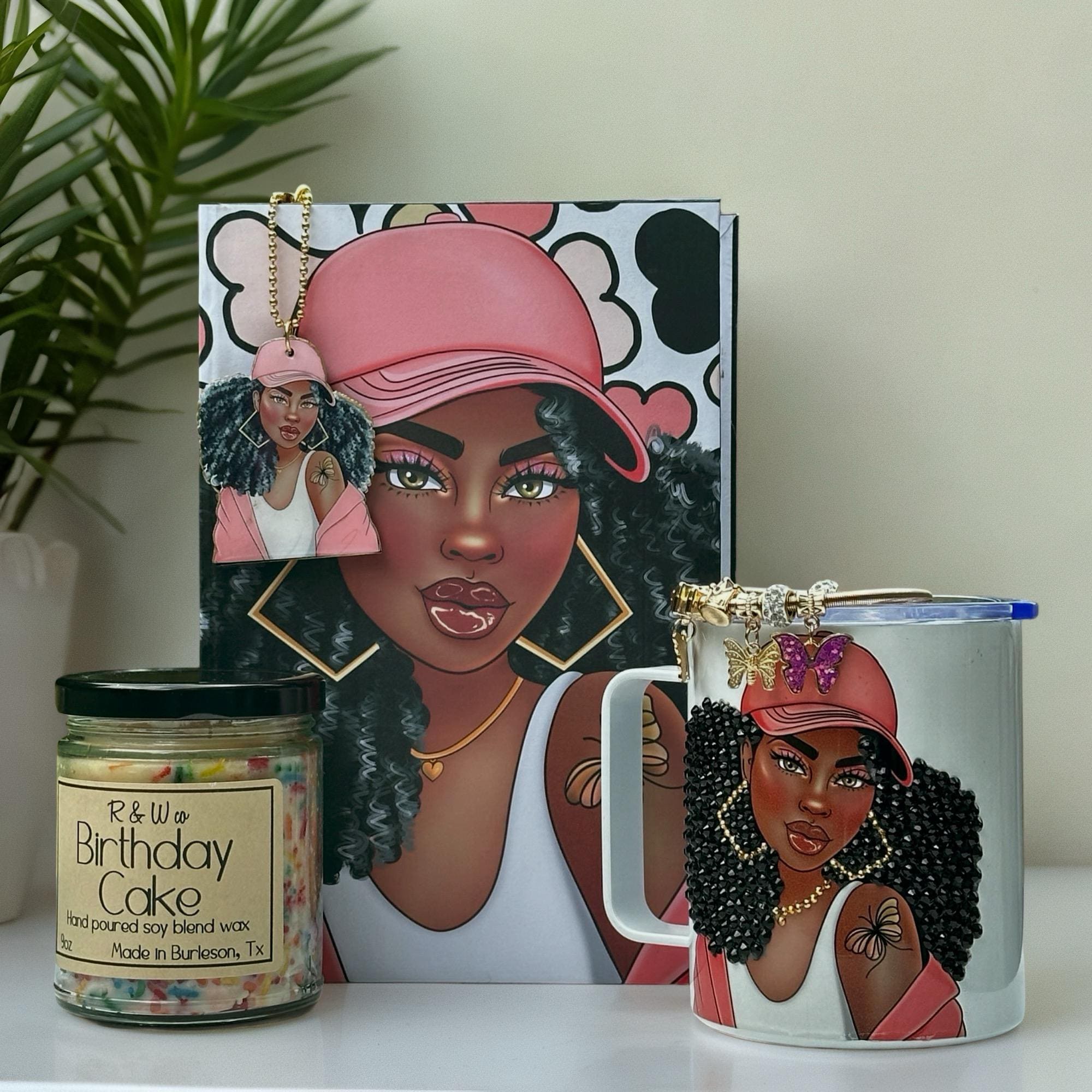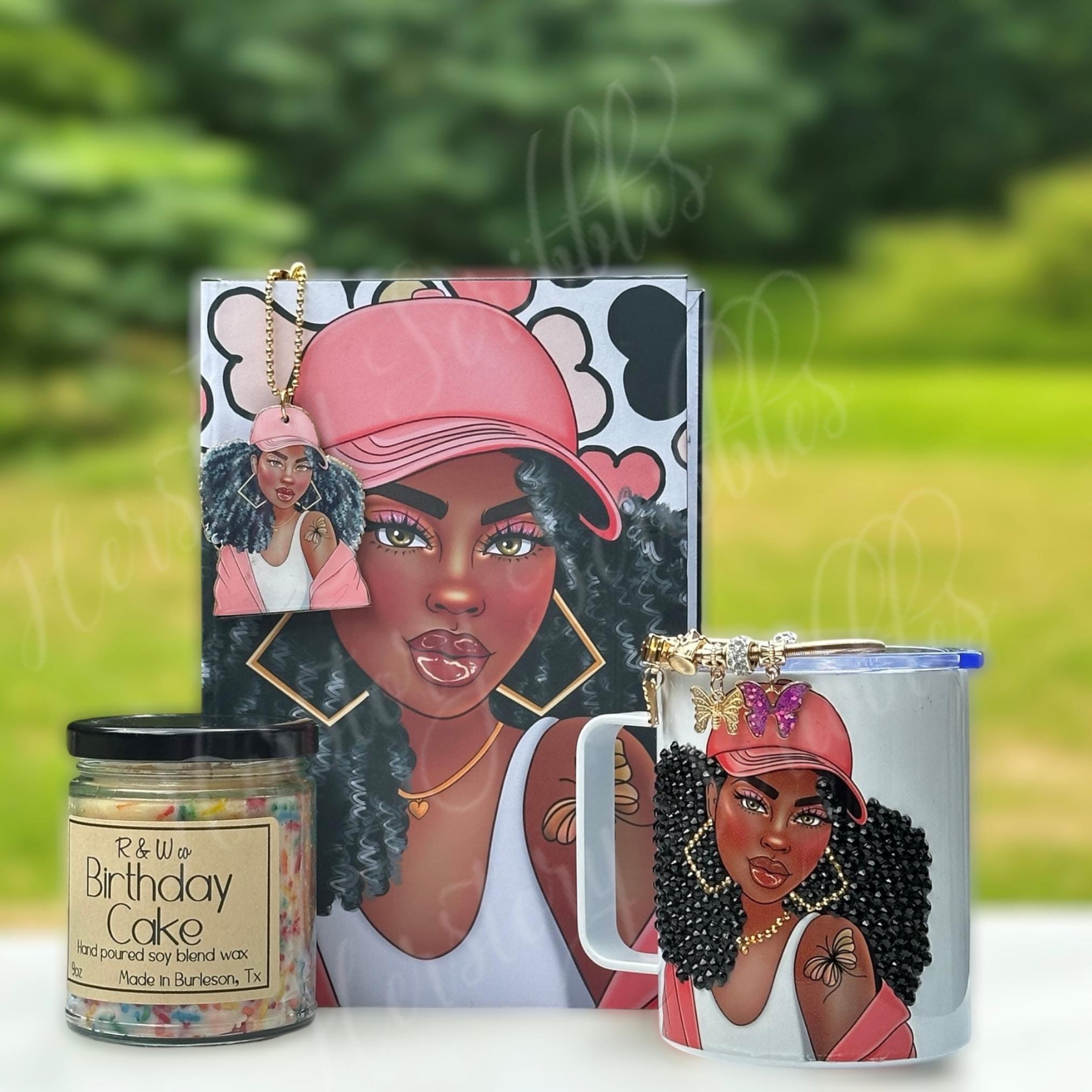 Celebrate self-love and sisterhood with this Afrocentric self-care gift box—a complete set designed for the woman who deserves to feel seen, celebrated, and adored. Handcrafted by HERSTORY Scribbles, this Black woman gift set makes the perfect birthday gift, care package, or relaxation gift for her.
