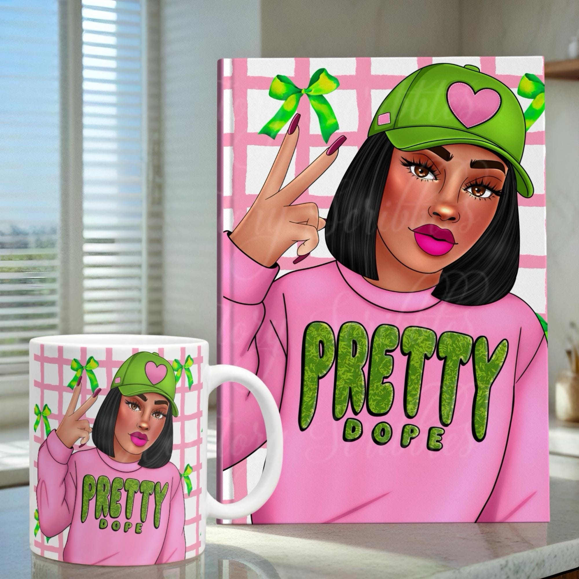 Hardcover Journal (150 pages, lined) – Features exclusive Afrocentric artwork of a stylish Black woman, perfect for affirmations, notes, or journaling.