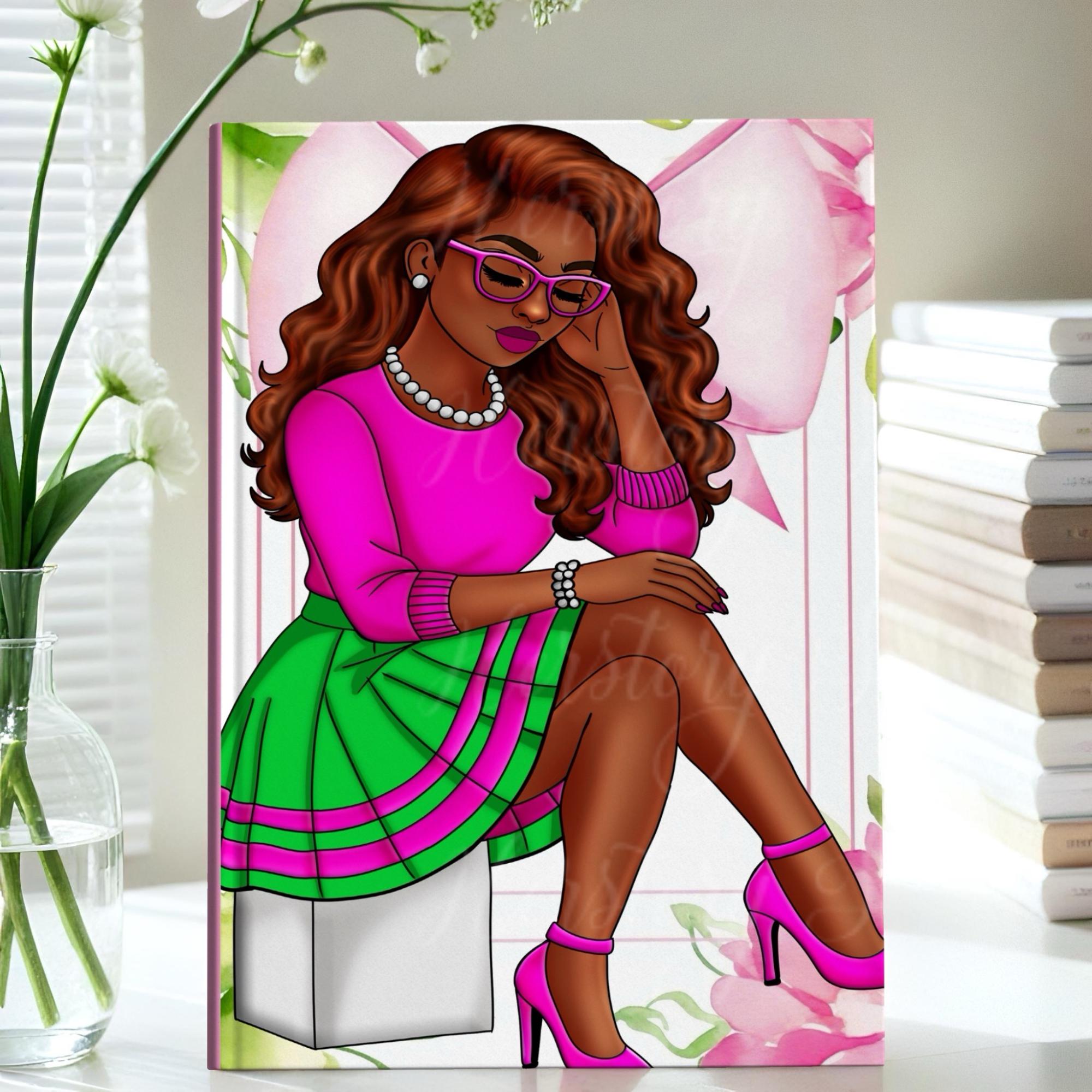 Step into your journaling era with this stylish and empowering Afrocentric notebook featuring a confident Black woman in chic fashion. Perfect for self-care, affirmations, and daily reflection, this journal adds a touch of elegance and inspiration to every page.