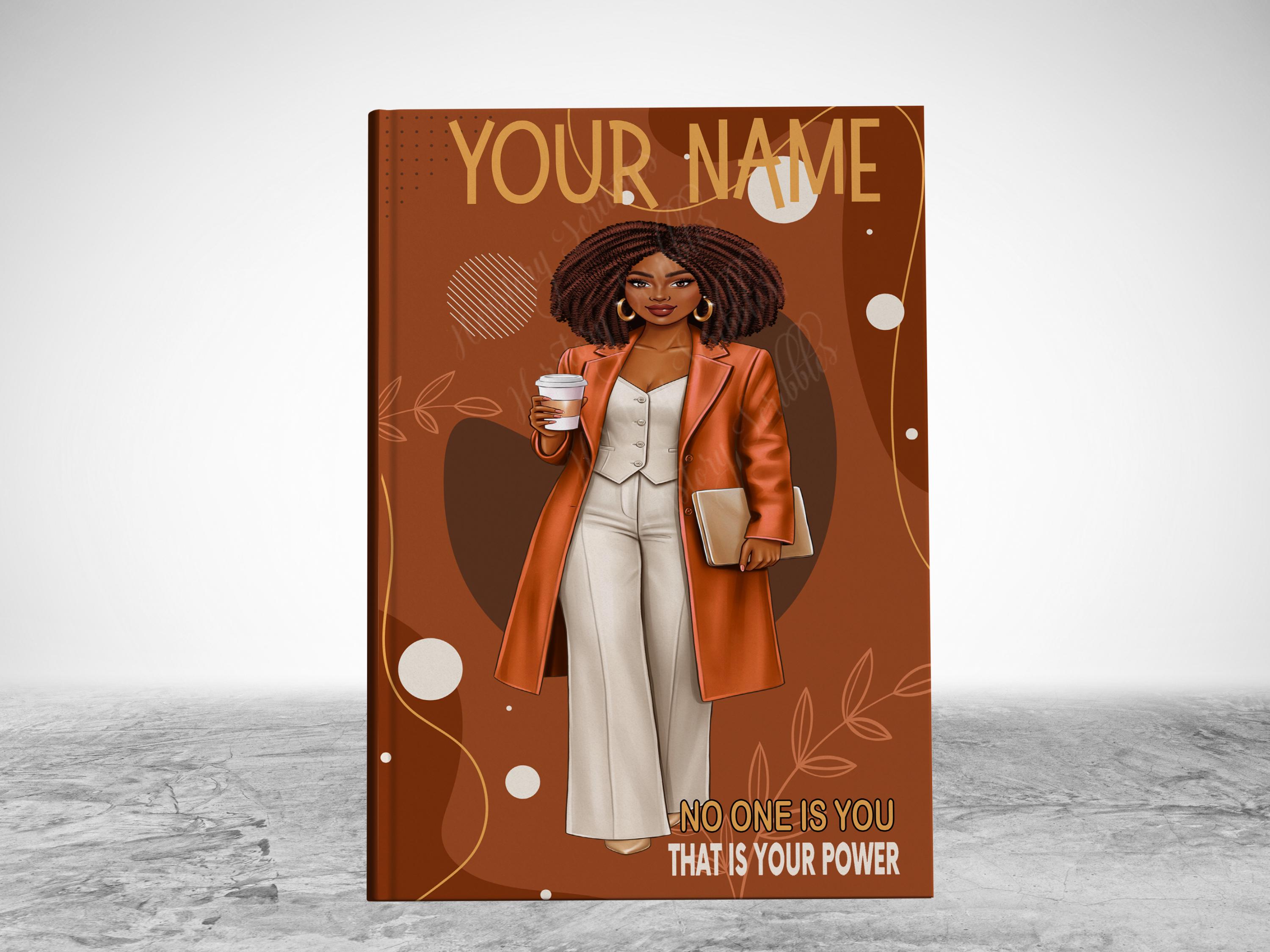 Step into your power with this Chic Black Woman Journal, designed for women who love to write, reflect, and glow unapologetically. This personalized notebook features bold Afrocentric artwork of a confident, stylish Black woman — a true reminder that “No one is you, that is your power.”