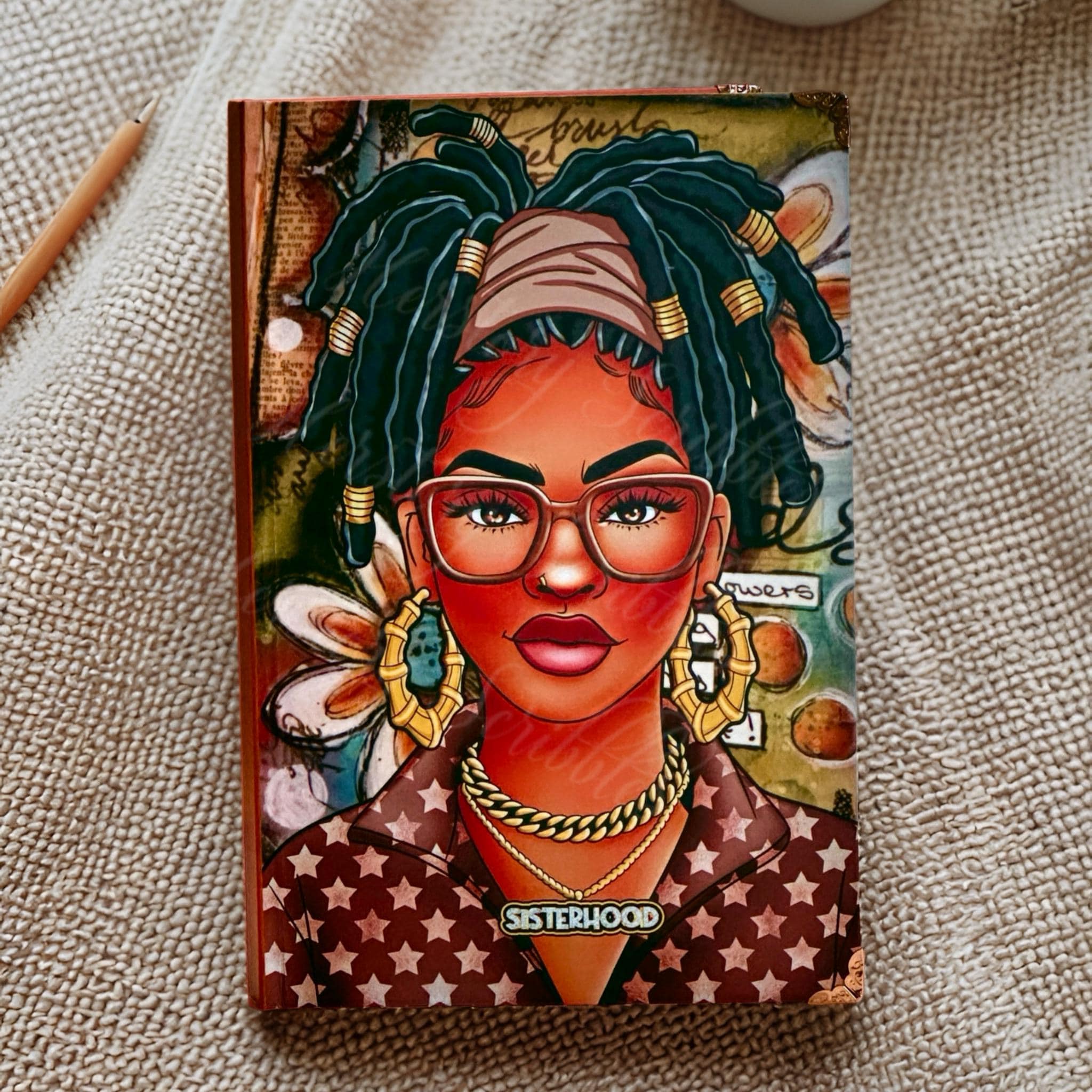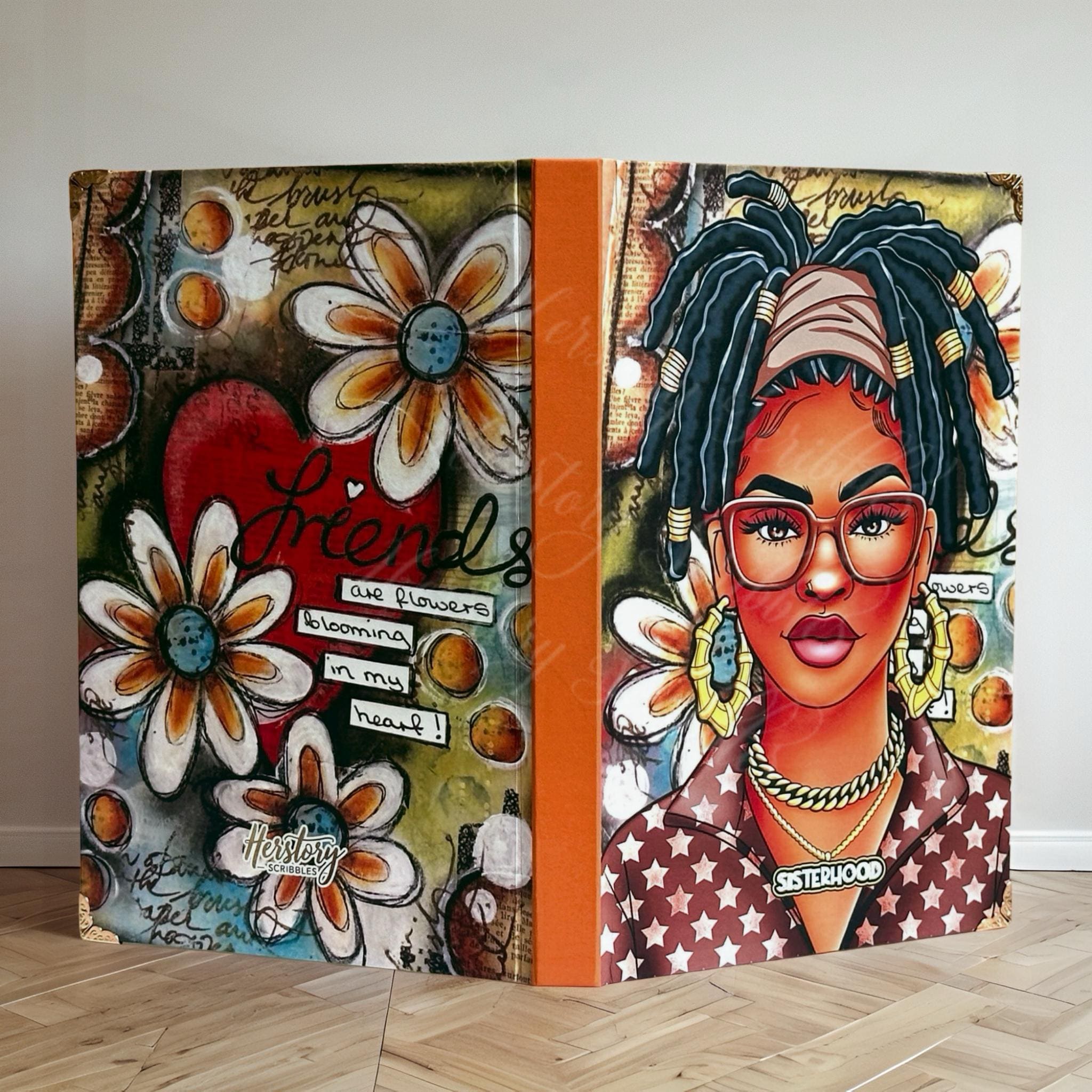 Celebrate sisterhood, friendship, and self-love with this handmade 150-page journal featuring bold Afrocentric artwork and monthly journaling prompts to inspire your journey.